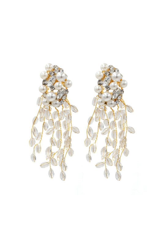 Pearl Dangle Earrings Crystal Gold Floral Hoop