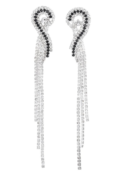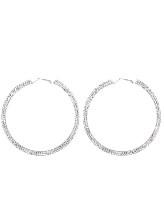 Silver Rhinestones Simple Triple Layer Hoop Earrings