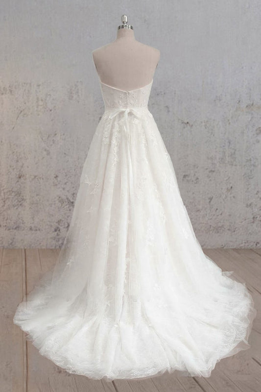 Strapless A-line Tulle Wedding Dresses with Lace Bodice