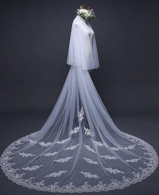 Ivory Tulle & Lace Cathedral Veil Blusher Veil