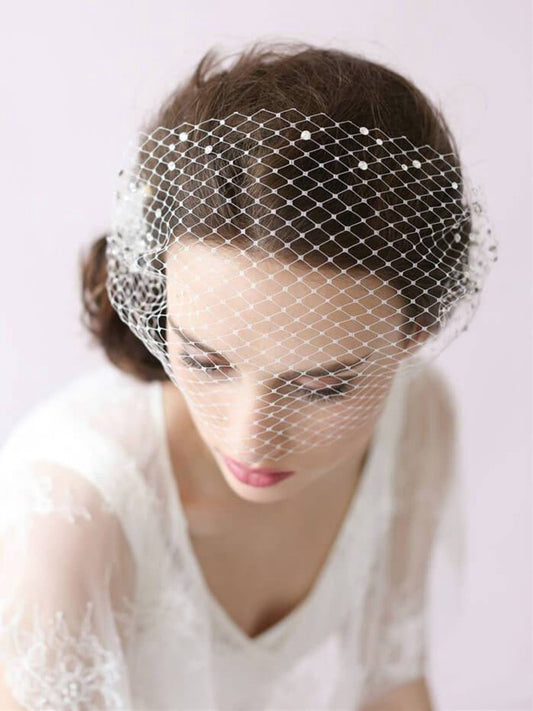 Ivory Mesh Birdcage Veils with Tiny Beads