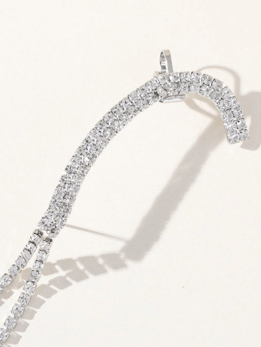 Rhinestones Silver Tassel Long Chain Earrings
