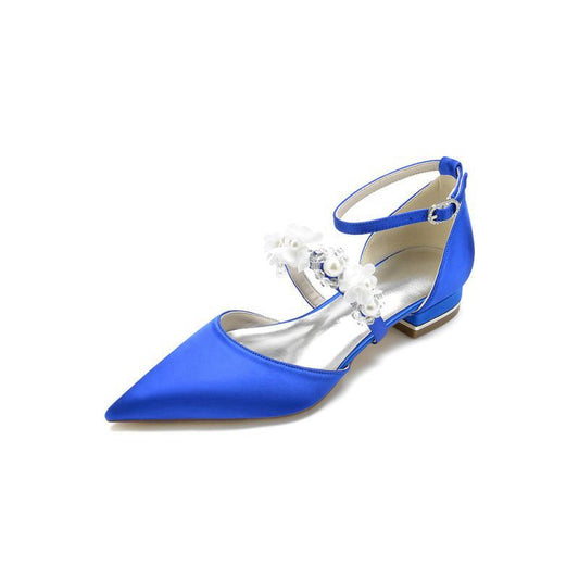 Stretch Glitter With Ankle Strap Rhinestone Pointed Toe Flat Heel Party Shoes