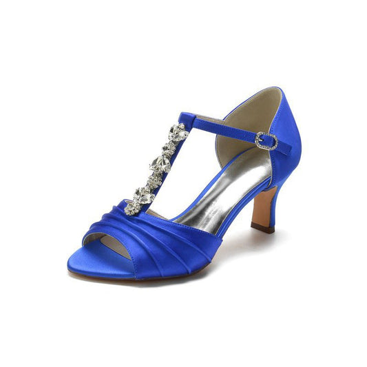 Satin Heels with Cross-Strap Design and Pearl-Accented Buckle