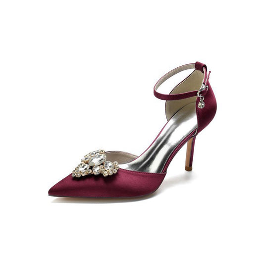 Cocktail Pointed Toe Crystal Buckle Strap High Heels