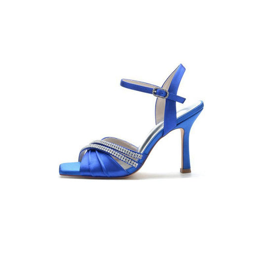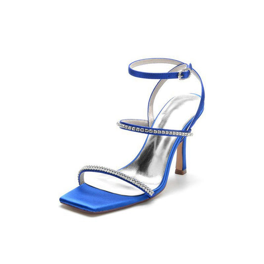 Unique Square Open Toe Crystal Strap Chunky Heels