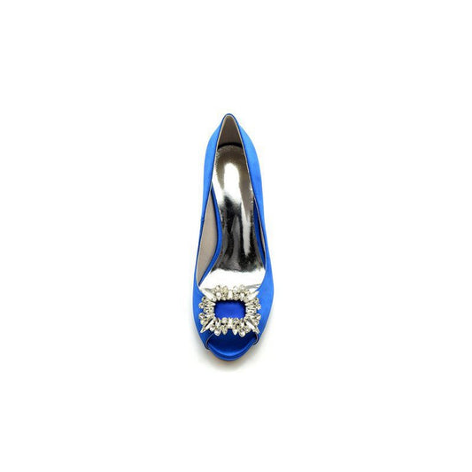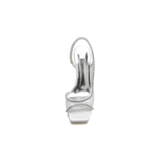 Open Toe Satin Strap Slip On High Heels With Rhinestone