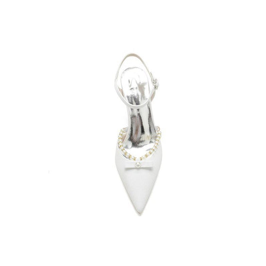 Pointed Toe Pearl Glitter Wedding Shoes With Bow