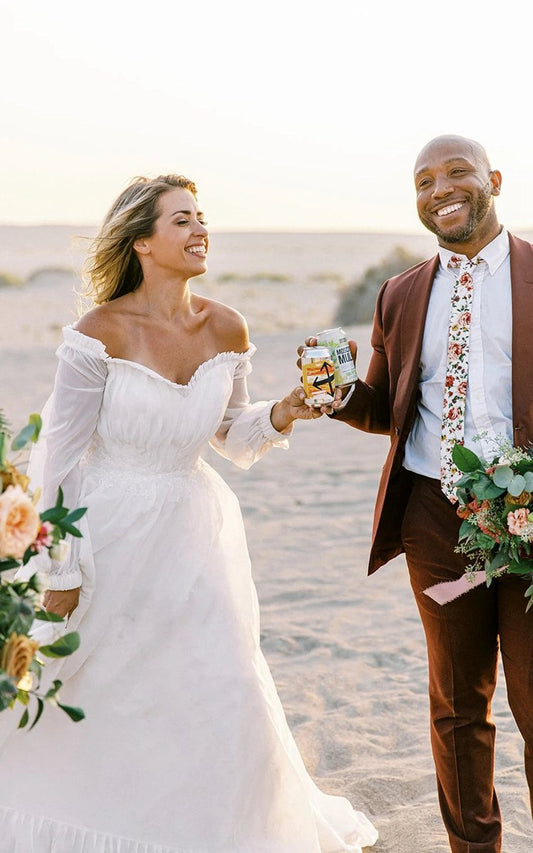 Floral A-line Boho Lace Sleeved Long Wedding Dresses with Sweep Train