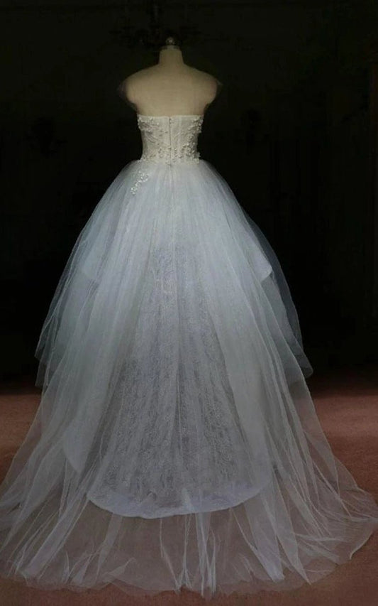 Strapless A-line Tulle Wedding Dresses with Lace Bodice