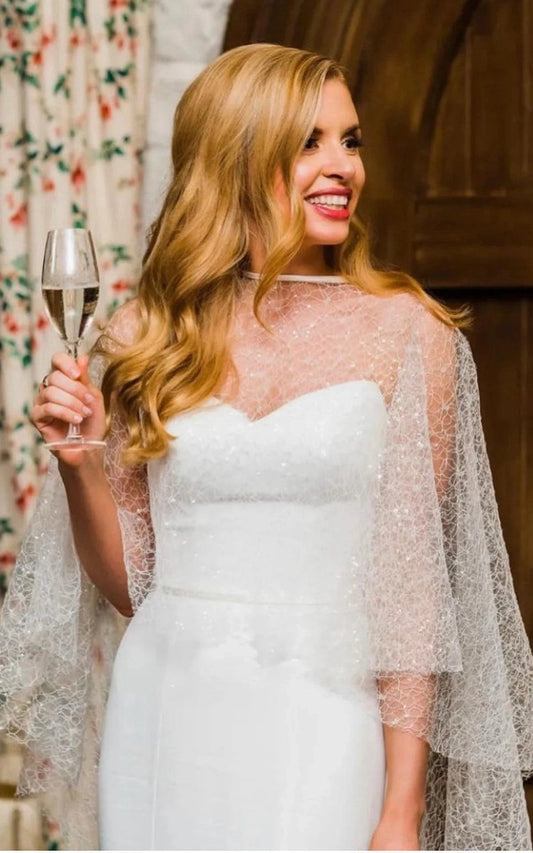 Mermaid Lace and Tulle Appliqued Cap Sleeve Bridal Gown