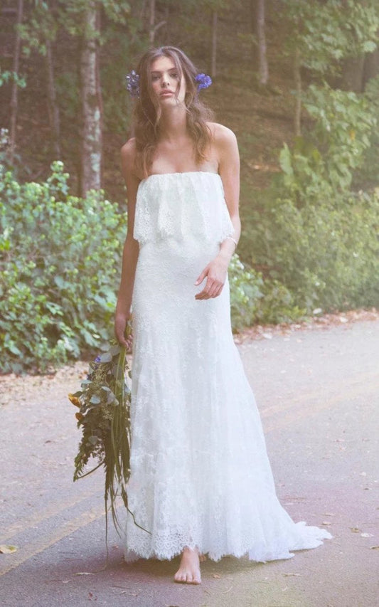 Off-Shoulder Long Mermaid Lace Boho Wedding Dresses with Ruffles
