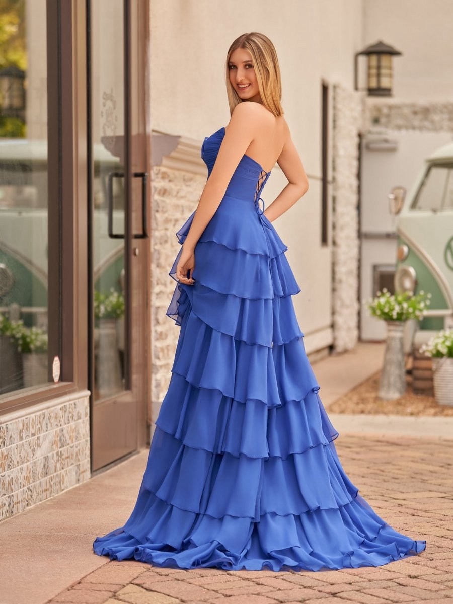 A-line Strapless V-Neck Layered Chiffon Sleeveless Formal Prom Dresses