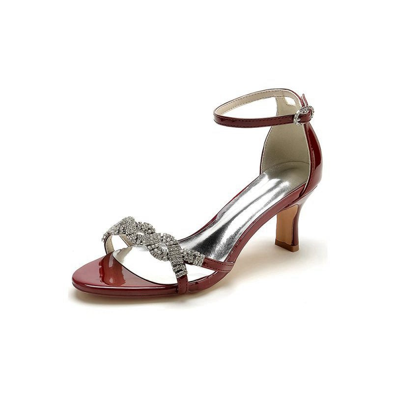 Ankle Strap Wedding Chunky Heels with Rhinestone