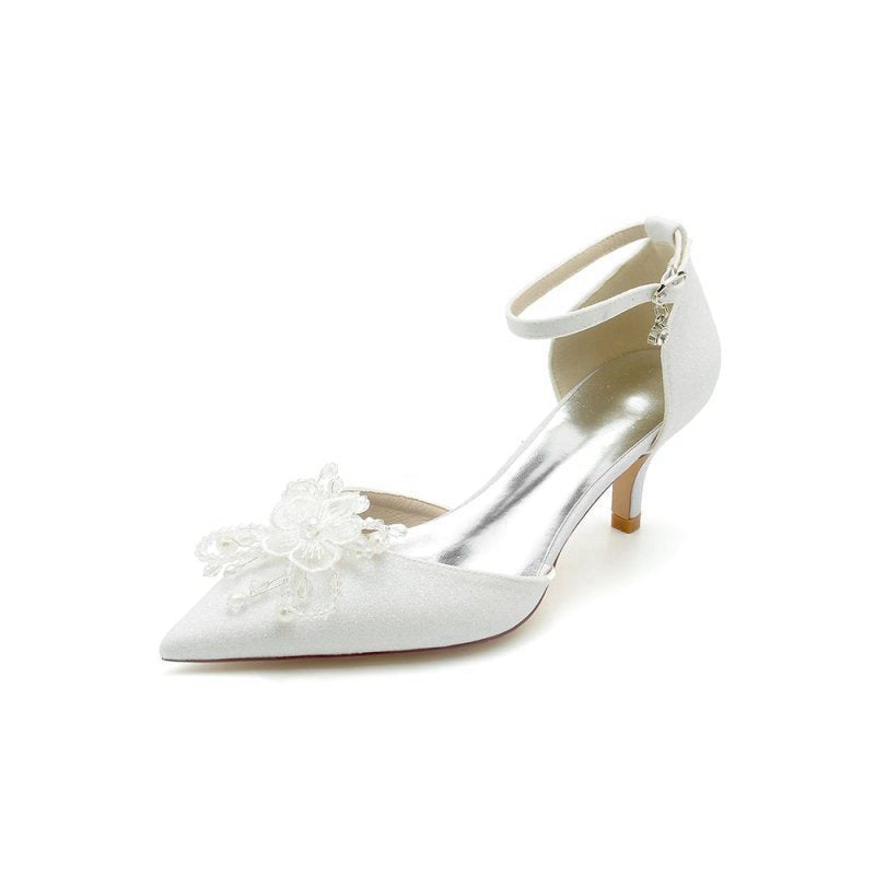 Ankle Strap Wedding Stiletto Heels with Flower