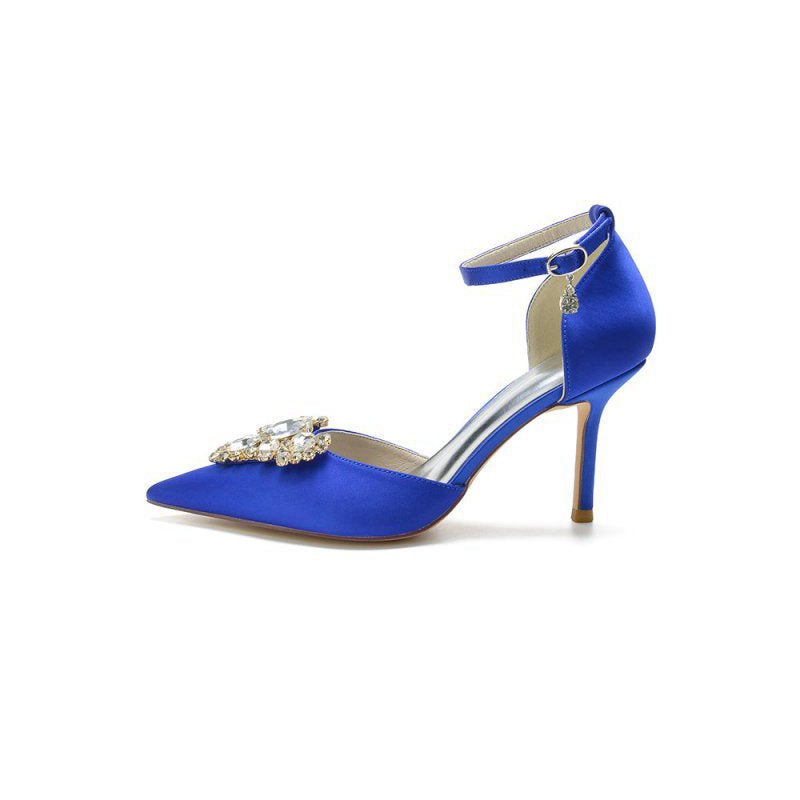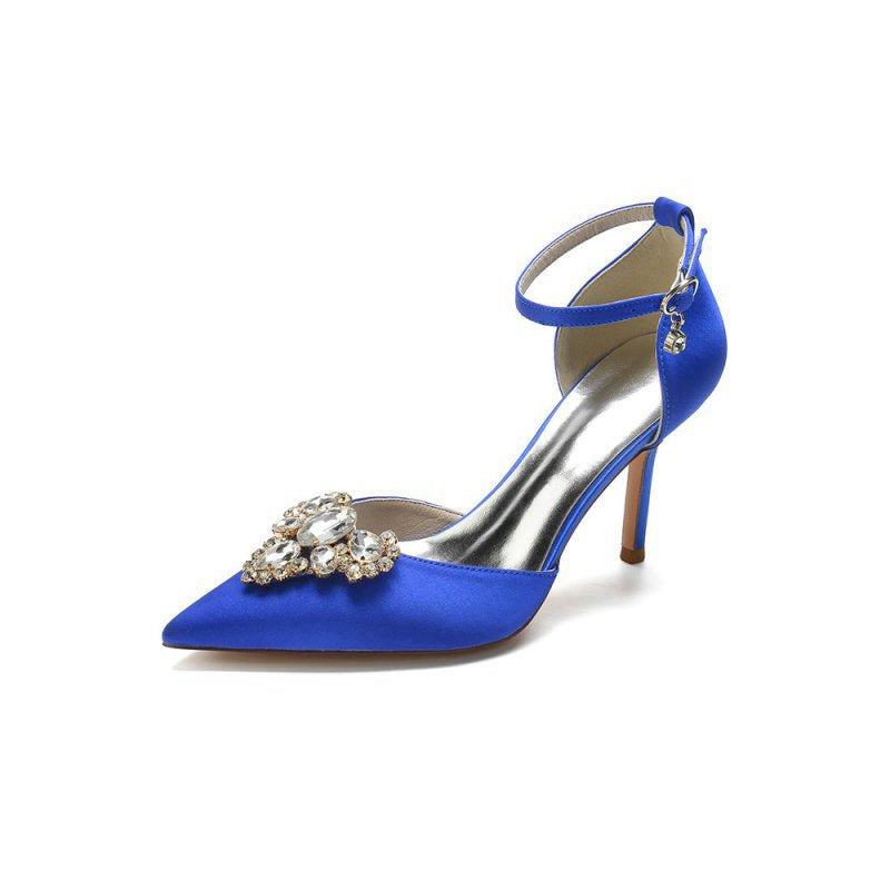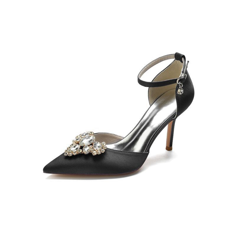 Elevate your look with these Cocktail Pointed Toe Crystal Buckle Strap High Heels, designed to make a statement at your wedding or prom. With a stunning rhinestone embellishment and a stiletto heel height of 8.5 cm, they add a touch of elegance and glamour. And the faux silk upper material and imitation pigskin sole ensure comfort. These heels will have you stepping into the spotlight with confidence, perfect for any glamorous occasion.