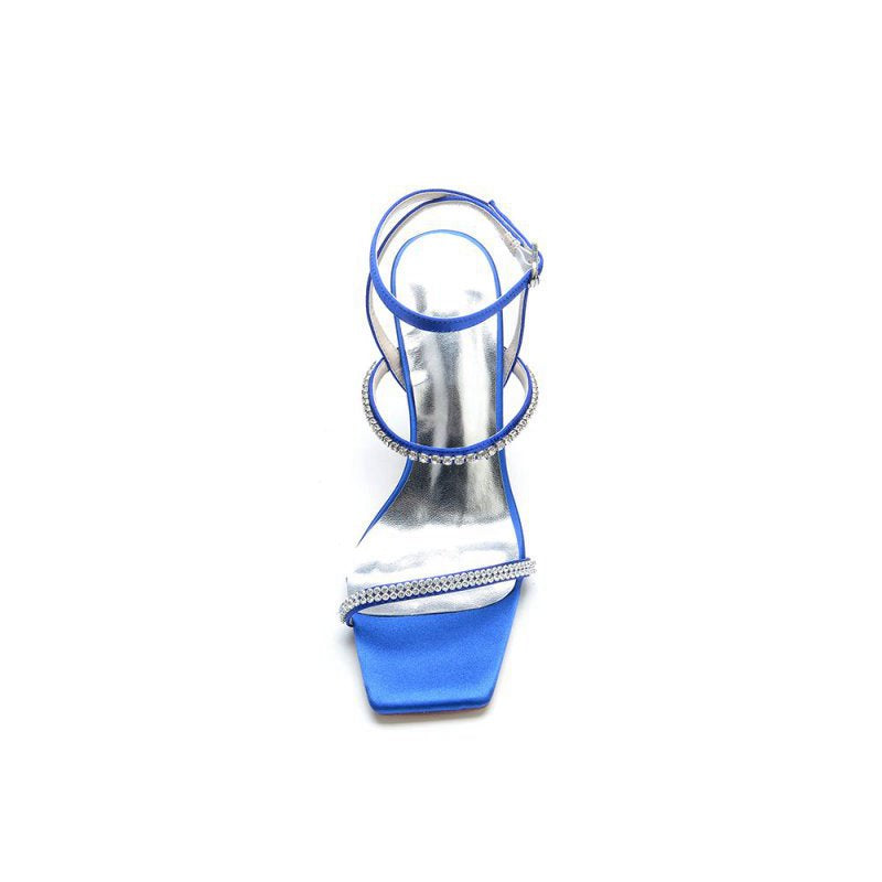 Elevate your look with these Crystal Cross Straps Square Open Toe Chunky Heels, designed to make a statement at your wedding or prom. With stunning cross straps and a chunky heel height of 9.5 cm, they add a touch of elegance and glamour. And the faux silk upper material and imitation pigskin sole ensure comfort. These heels will have you stepping into the spotlight with confidence, perfect for any glamorous occasion.