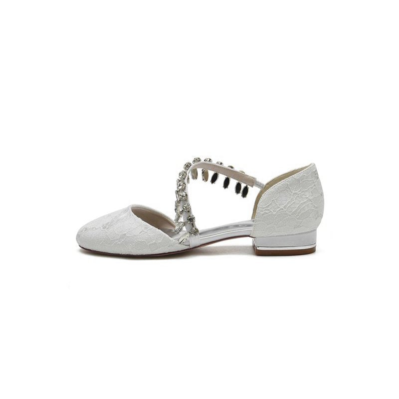 Dressmarkets Crystal Strap Lace Round Toe Flats