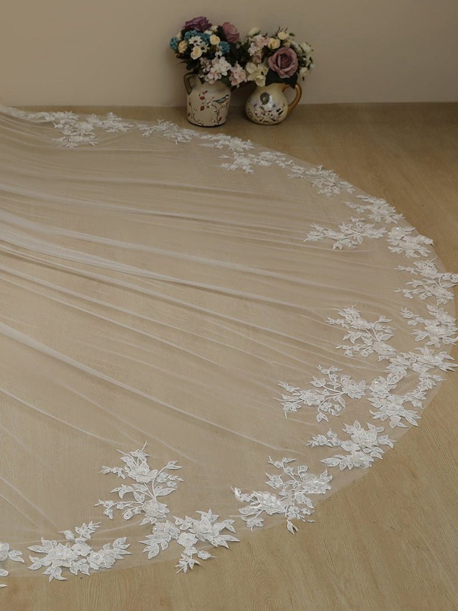 Delicated Flower Lace Cathedral Veil Bridal Veil Wedding Veil