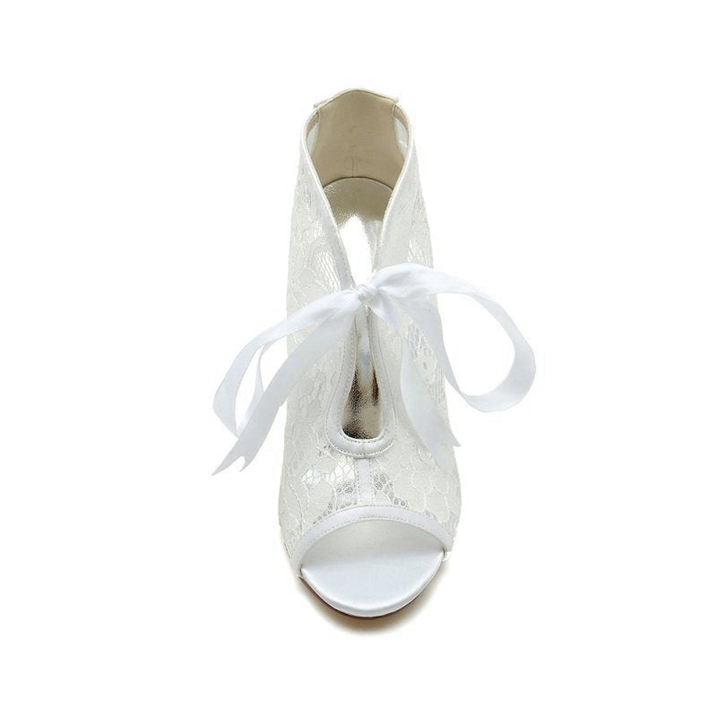 Add a touch of elegance to any occasion with these white lace high heels, featuring a delicate lace bow embellishment. With their stiletto heel and open toe design, these heels are perfect for wedding shoes, bridesmaid shoes, or prom shoes. The slip-on style and rubber sole provide comfort, making them ideal for evening shoes, party shoes, and special occasions.