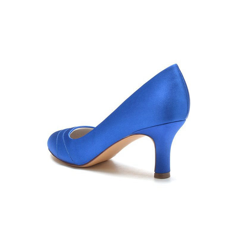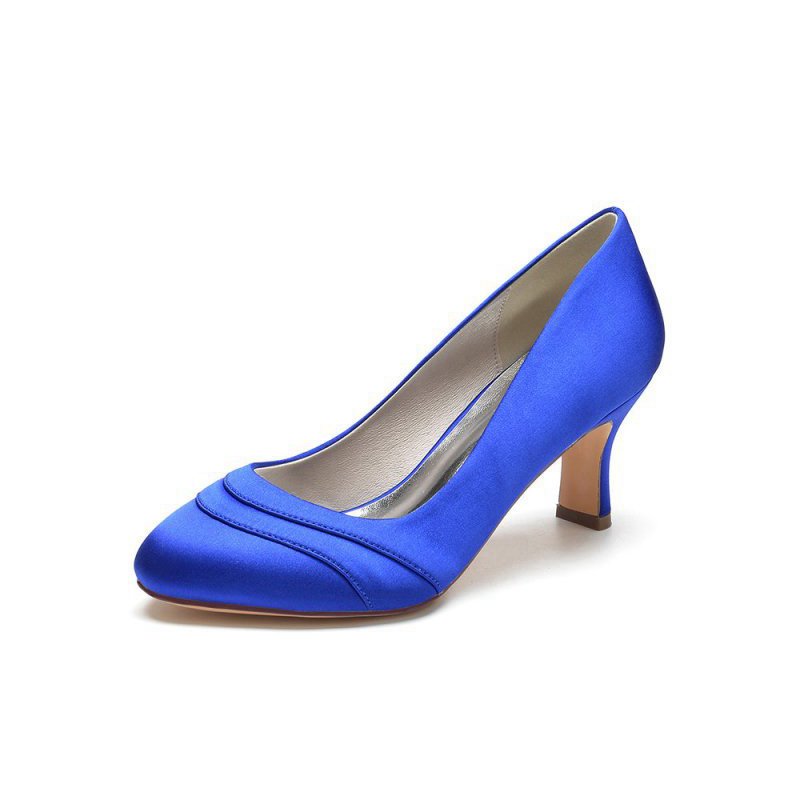 These elegant royal blue satin heels are perfect for prom, weddings, or any special occasion. Featuring a short chunky heel and a round toe, they offer a comfortable yet stylish look. The slip-on design and artificial leather lining make them ideal as evening shoes, party shoes, or bridesmaid shoes for any celebration.