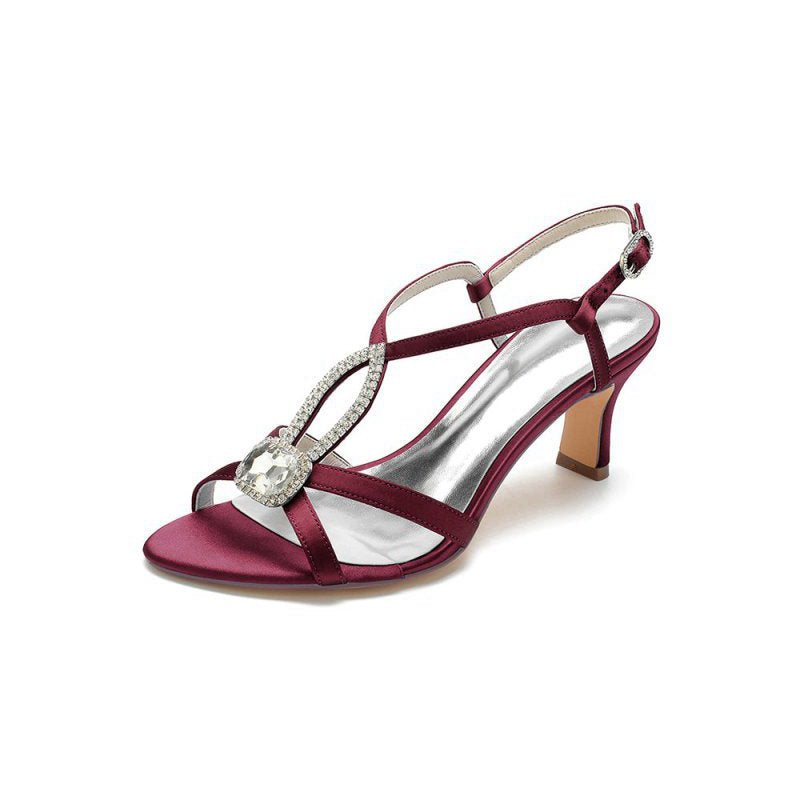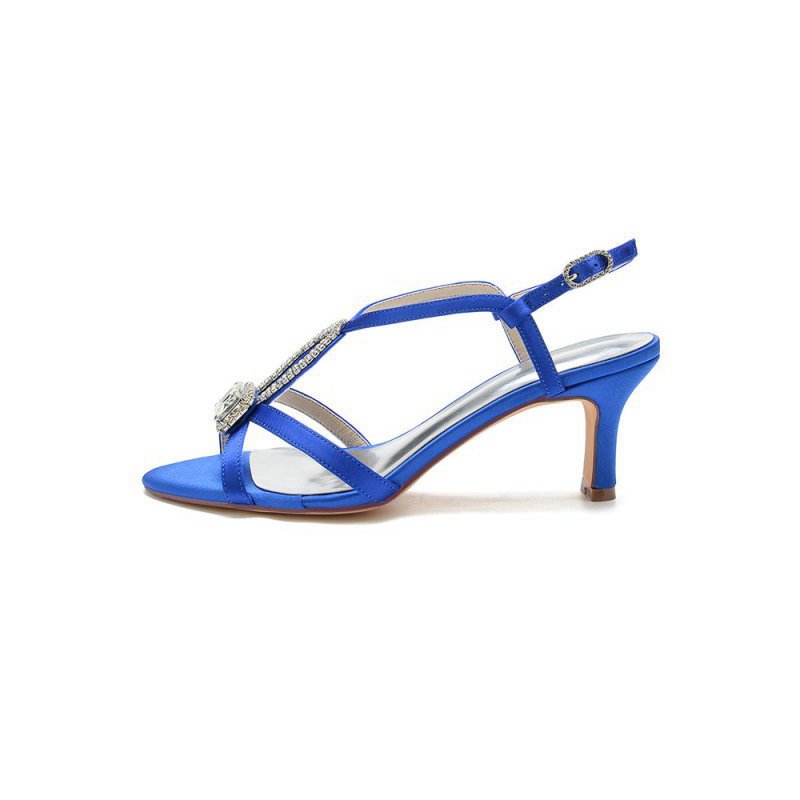 Make a statement at any prom, wedding, or party with these elegant royal blue satin peep-toe pumps. Featuring a stunning silver ornament and chunky heels, these evening shoes offer both style and comfort. The slip-on design and durable rubber sole are perfect for bridesmaid shoes or any special occasion.