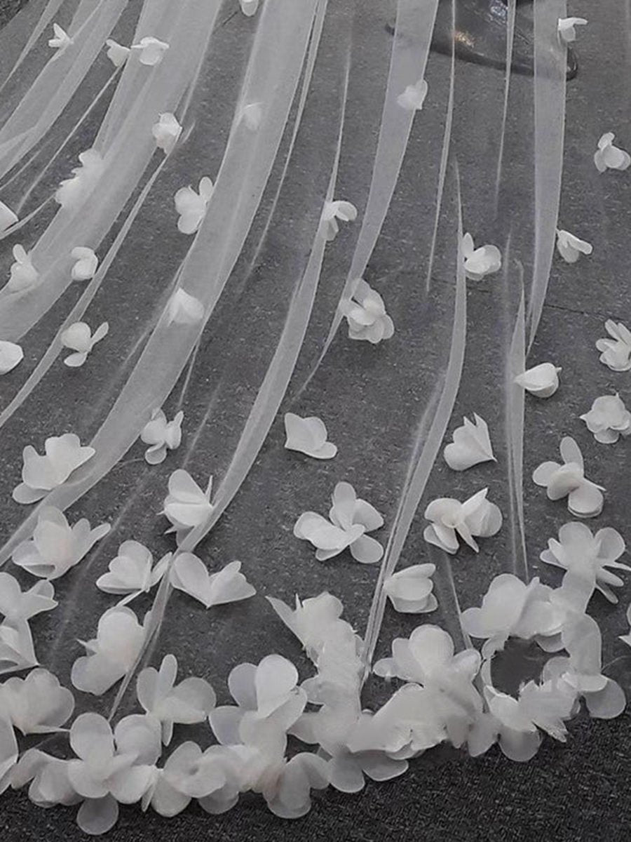 This Delicate Flower Lace Cathedral Veil is perfect for your special day. Show off your 3D flowers in a stunning cathedral-length veil. Its luxury fabric and delicate design add a romantic touch to any look.