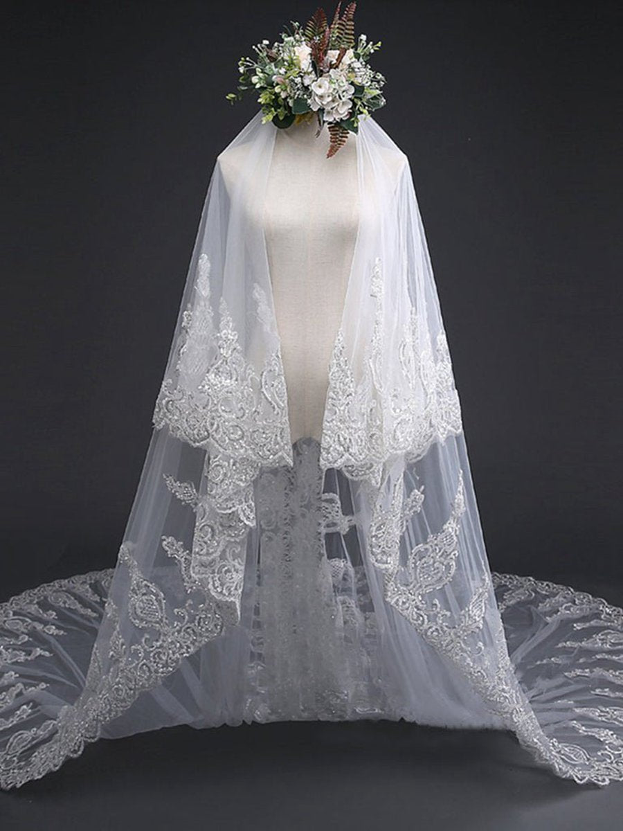 Dressmarkets Exquise Floral Lace with Shaped Edge Cathedral Veil Bridal Veil Wedding Veil