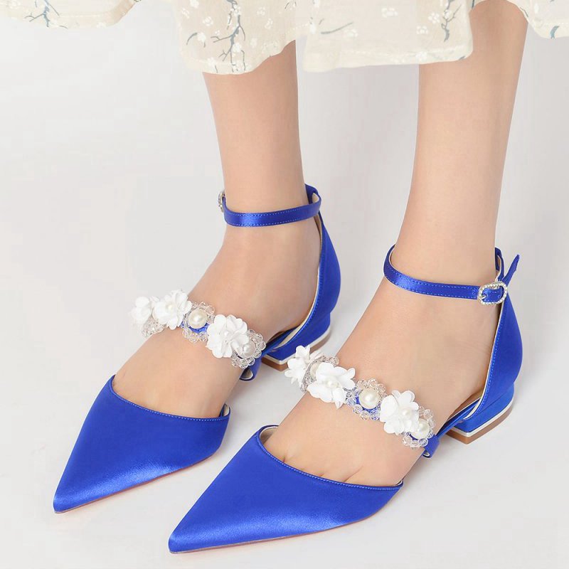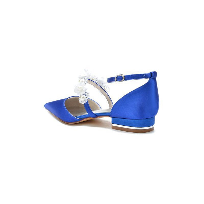 Step into elegance and comfort with Crystal Buckle Strap Pointed Toe Flats. Featuring beautiful Pearl embellishments and a delicate faux silk upper, these flats are designed to add a touch of sparkle to any special occasion. The chic Crystal detail brings a playful yet sophisticated look, while the low heel ensures all-day comfort. With a rubber sole for durability and faux leather lining for a soft, cushioned feel, these flats are perfect for weddings, parties, and other glamorous events.