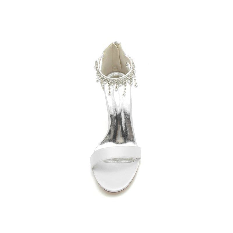 Elevate your style with these elegant white leather high heels. The chic silver chain accent adds a touch of glamour, perfect for any occasion. These versatile heels are ideal for weddings, prom, or special events. The pointed toe and slip-on design offer sophistication, while the stiletto heel adds a modern flair. A must-have for your party and evening shoe collection.