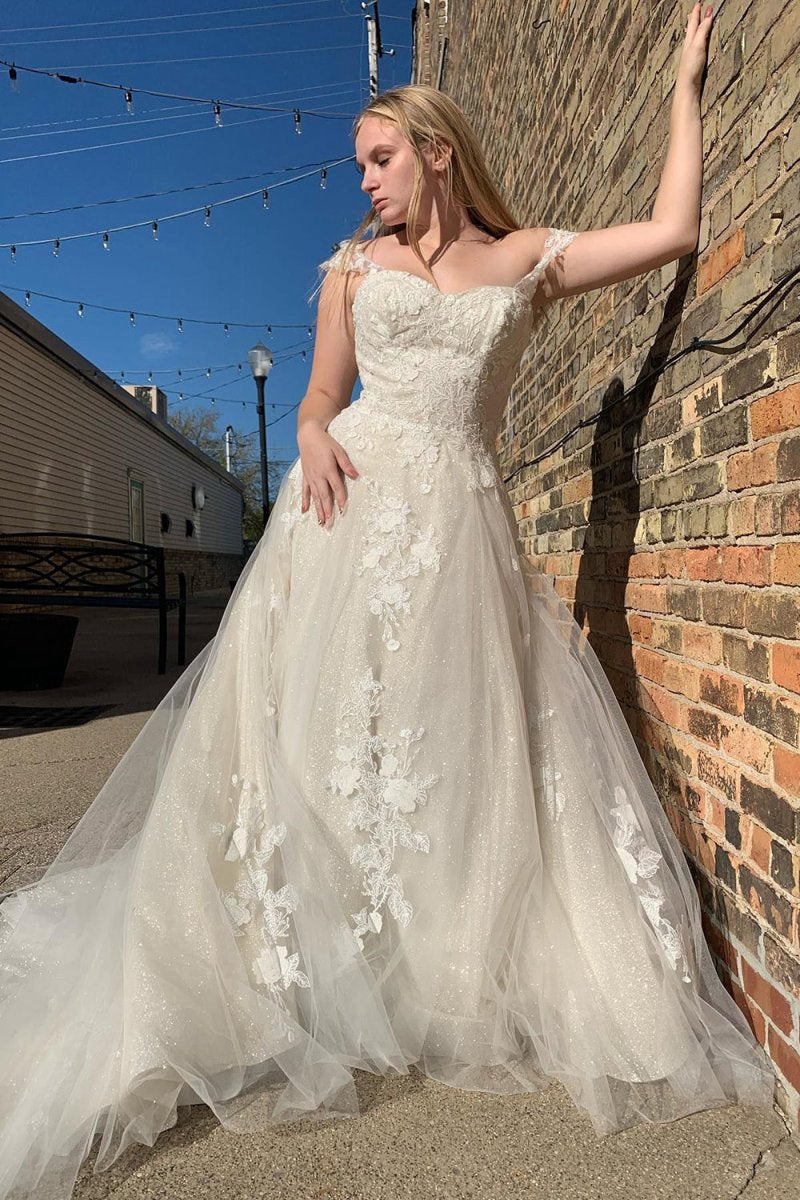 Dressmarkets Glitter A-line Off The Shouder Long Wedding Dresses with Appliques