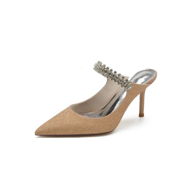 Glitter Pointed Toe Rhinestone Strappy Slip-on Stiletto Heels