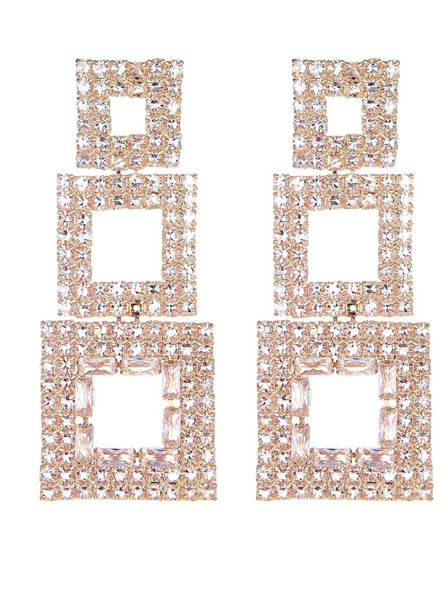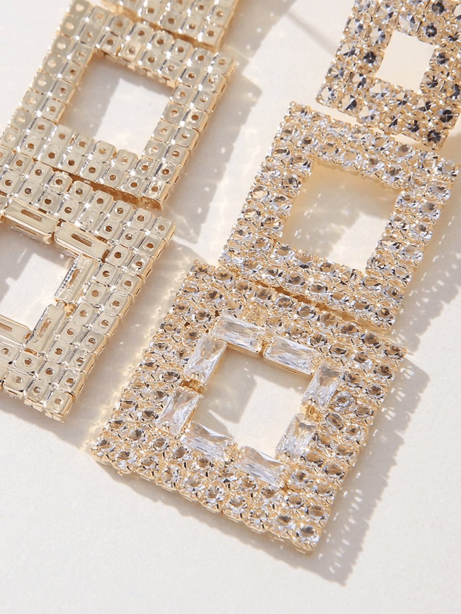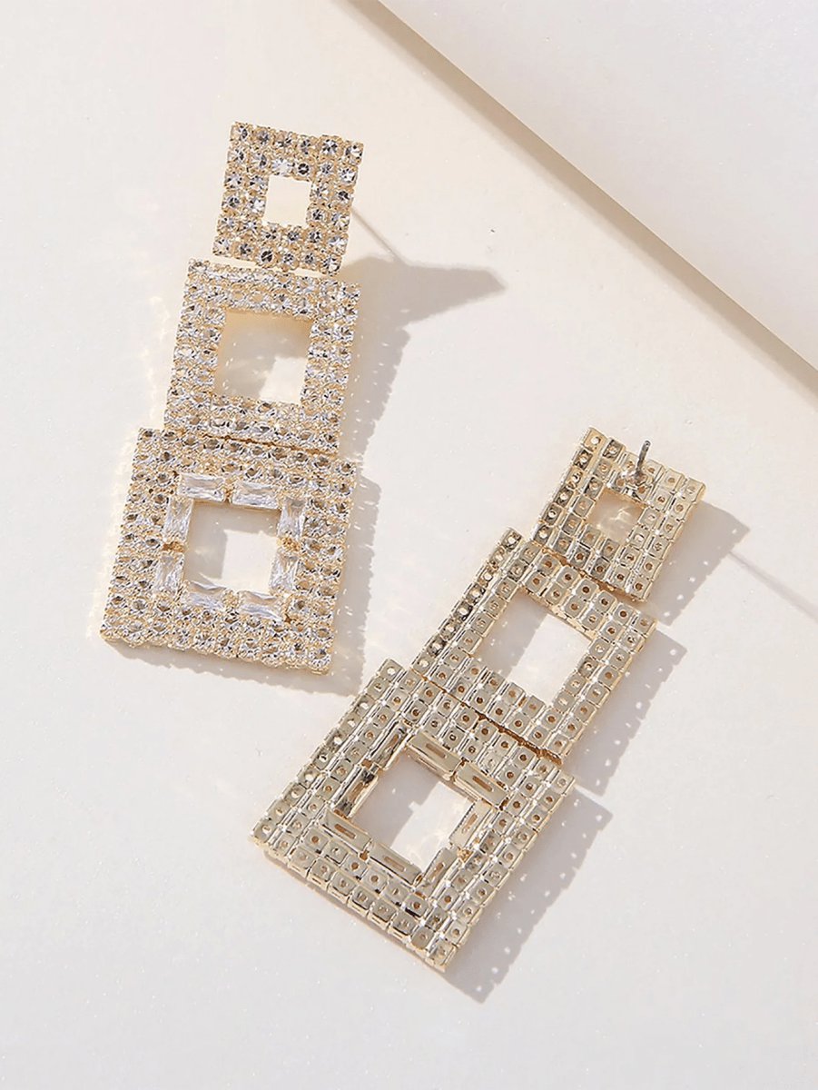 Dressmarkets Golden Paneled Square Earrings