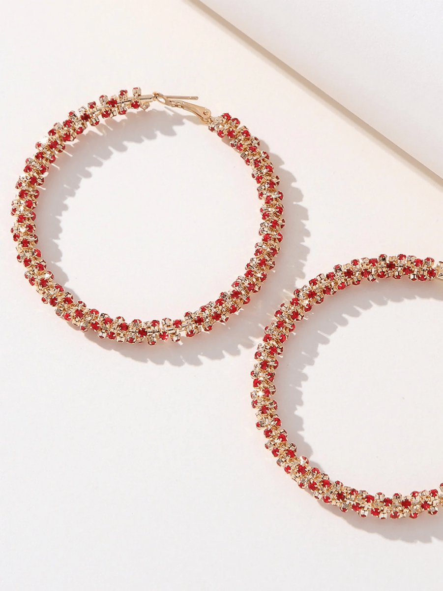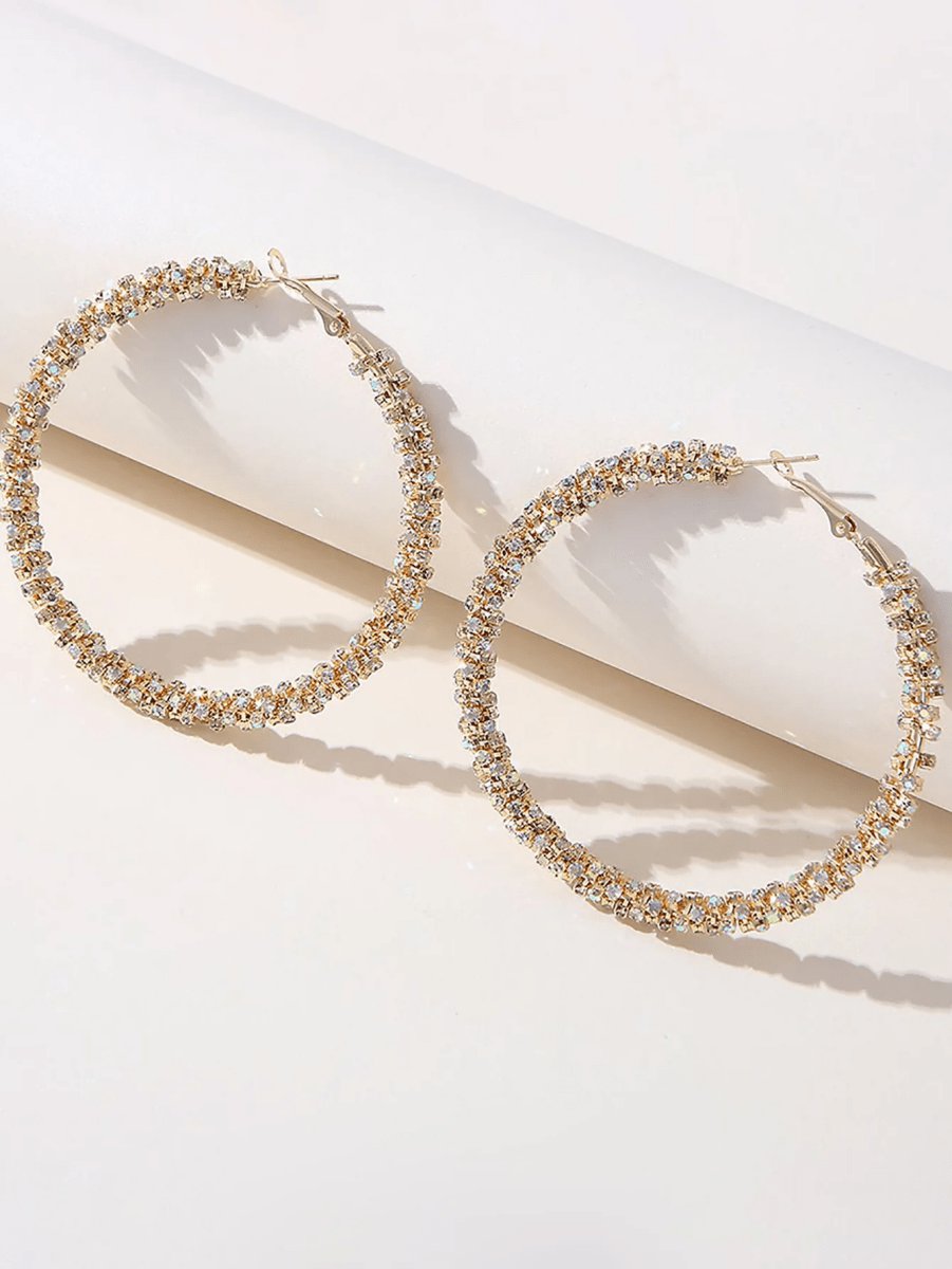 Dressmarkets Golden Rhinestones Simple Hoop Earrings