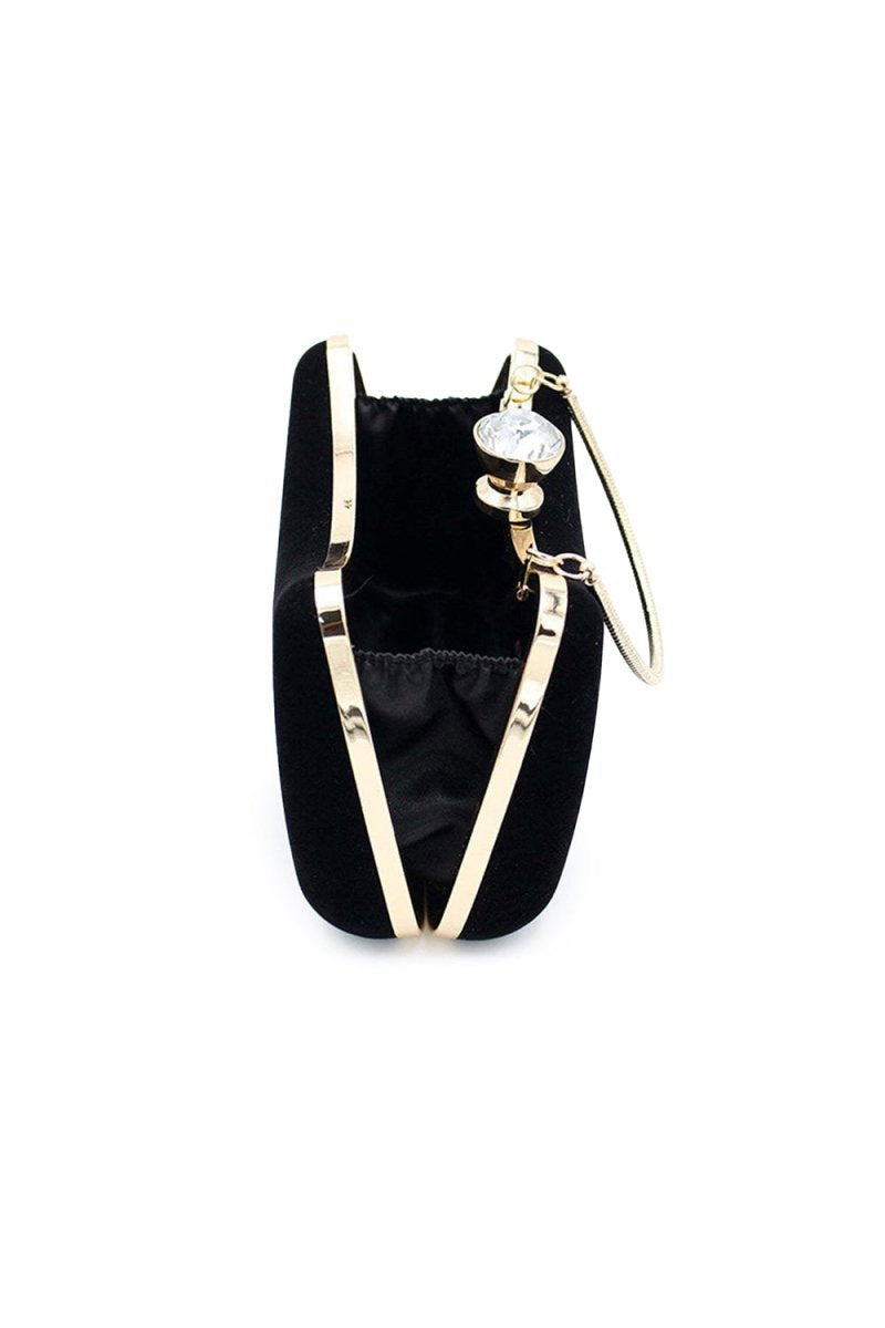 Dressmarkets Graceful Black Rhinestone Handle Clutch Bag