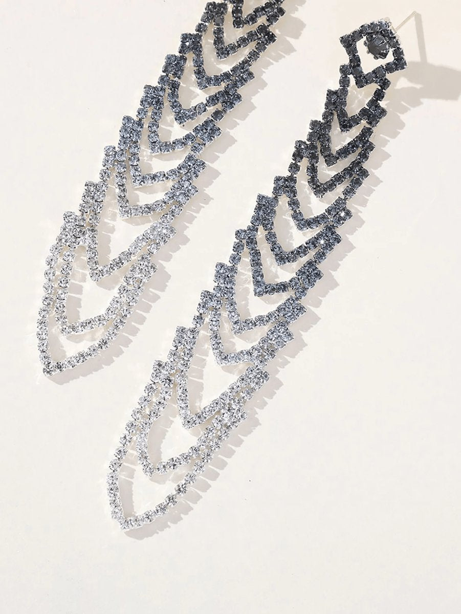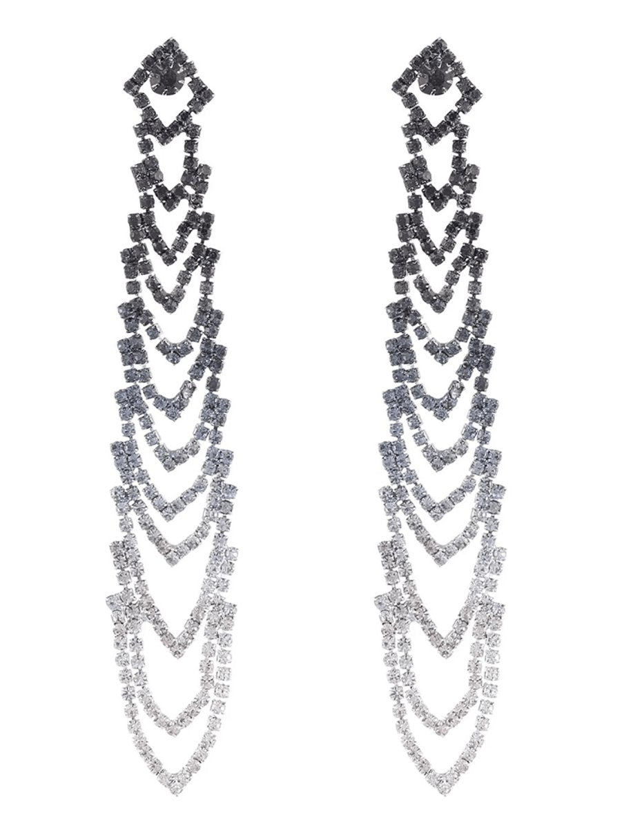 Dressmarkets Gray Gradient Rhinestones Tassel Long Chain Earrings