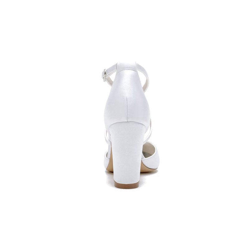 Indulge in elegance and refinement with these exquisite white high heels. Meticulously crafted from premium leather, these shoes boast a sleek and contemporary design that is both enduring and sophisticated. The criss-crossed straps at the back add a touch of intricacy and allure, while the silver metallic accents offer a striking contrast to the predominantly white palette. A dainty flower embellishment made from delicate silk-like material and adorned with a pearly centerpiece delicately adorns the toe, adding a feminine and refined touch to the overall aesthetic. The sturdy metal heel provides stability and adds a touch of fashion-forward flair. The transparent sole offers a glimpse into the internal structure of the shoe, elevating the classic high-heel design with a modern twist. Whether dressing up for a special occasion or looking to add a dash of glamour to your everyday attire, these sophisticated white heels with silver details are an essential addition to your footwear collection. The fusion of classic and contemporary elements creates a timeless allure that will appeal to