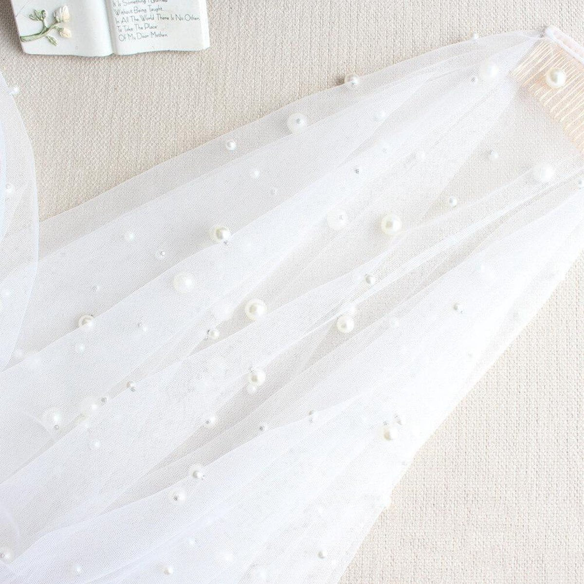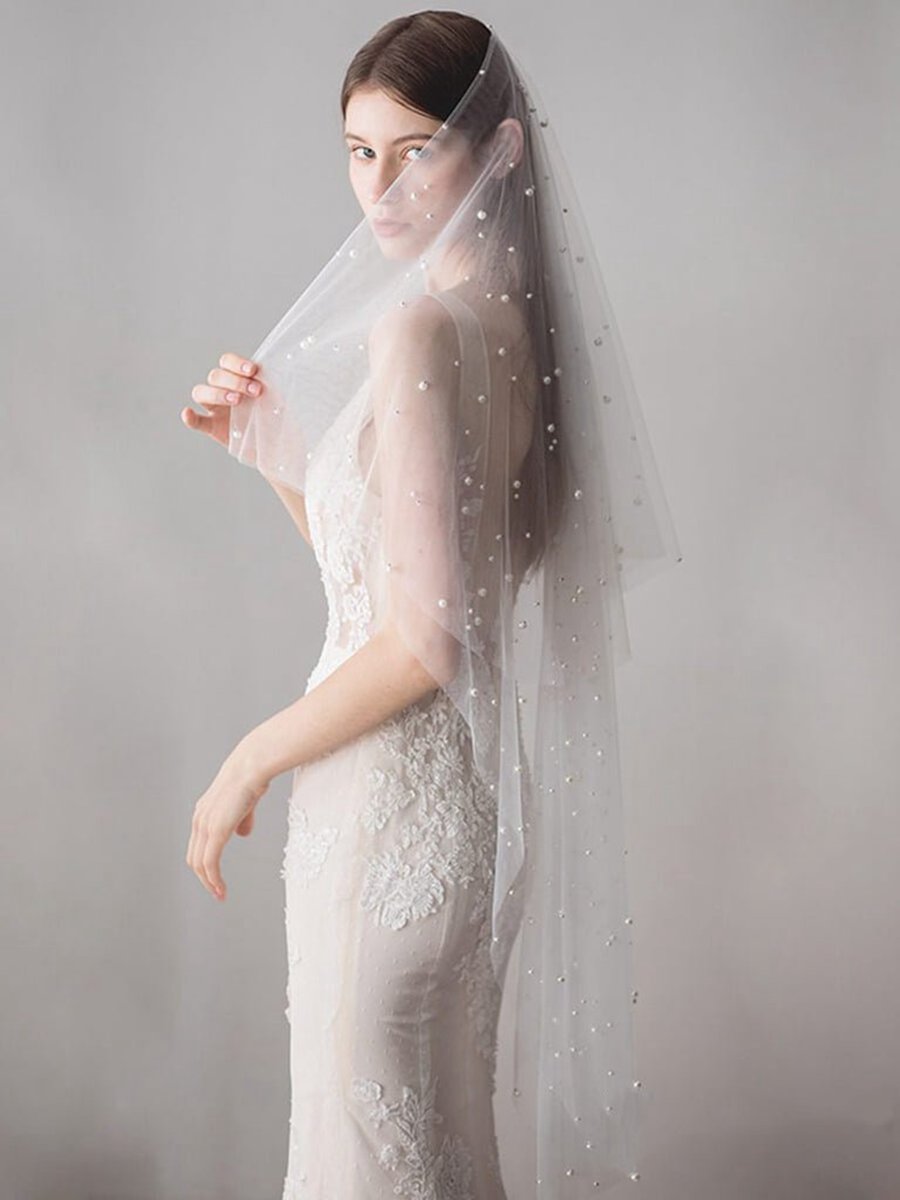 Hip Length Ivory Tulle Wedding Veils with Pearl Drop Veil