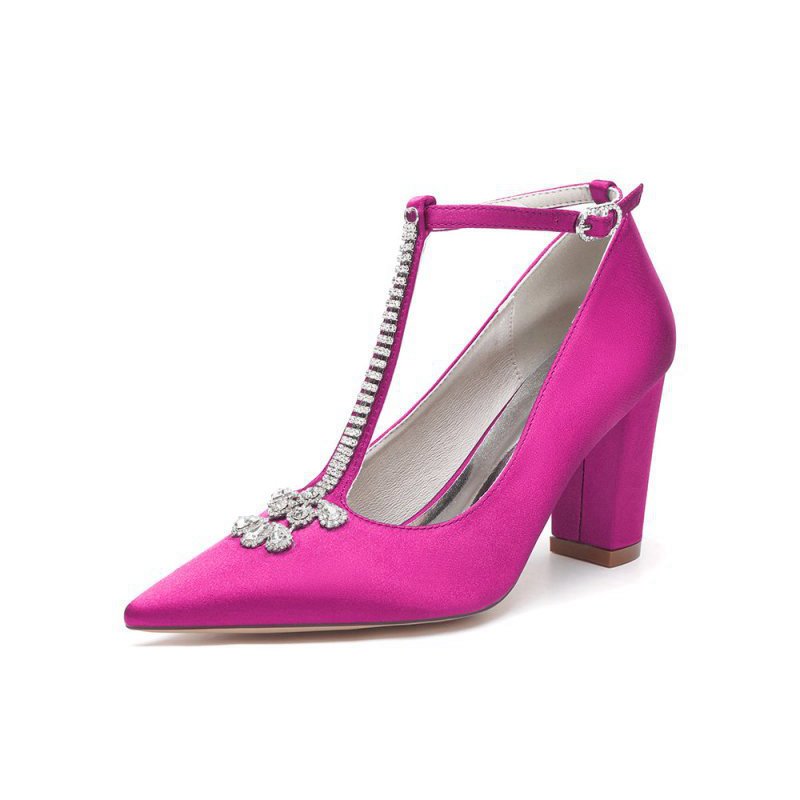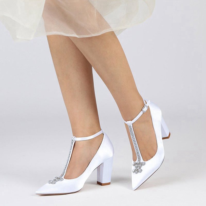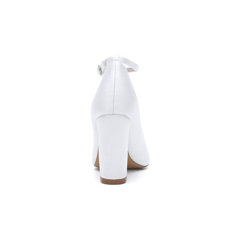 These elegant White Leather Pumps are a perfect blend of sophistication and style. Featuring a silver chain and rhinestone accents, these chunky heels with a pointed toe are ideal for prom shoes, wedding shoes, or party shoes. The slip-on design ensures comfort, while the chic embellishments make them an excellent choice for bridesmaid shoes and any special occasion.