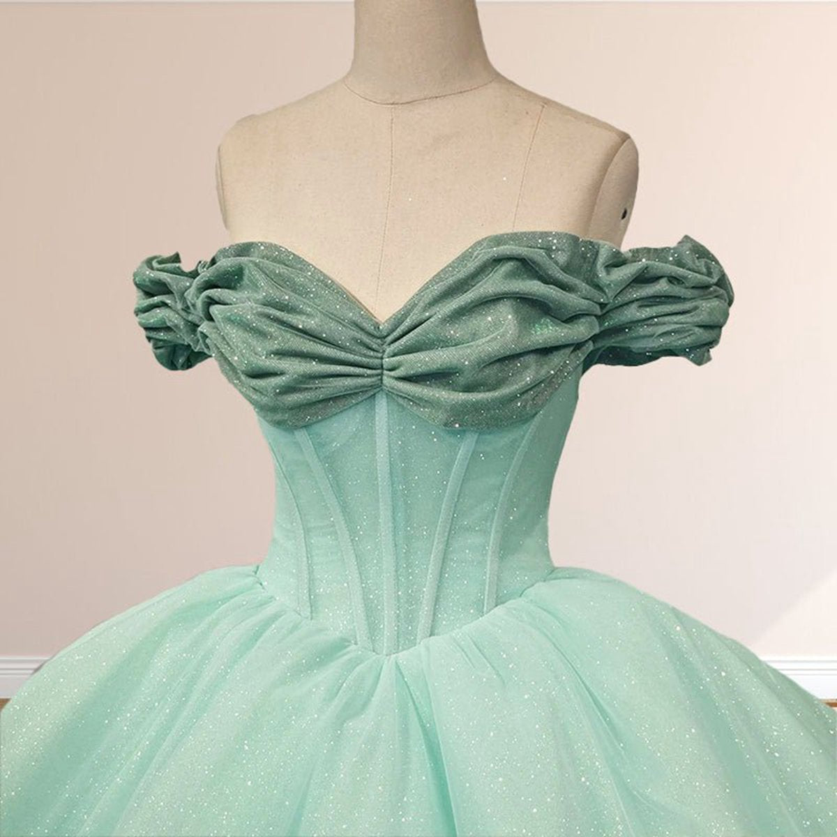 Dressmarkets Mint Off the Shoulder Tulle Ball Gown Quinceanera Dresses