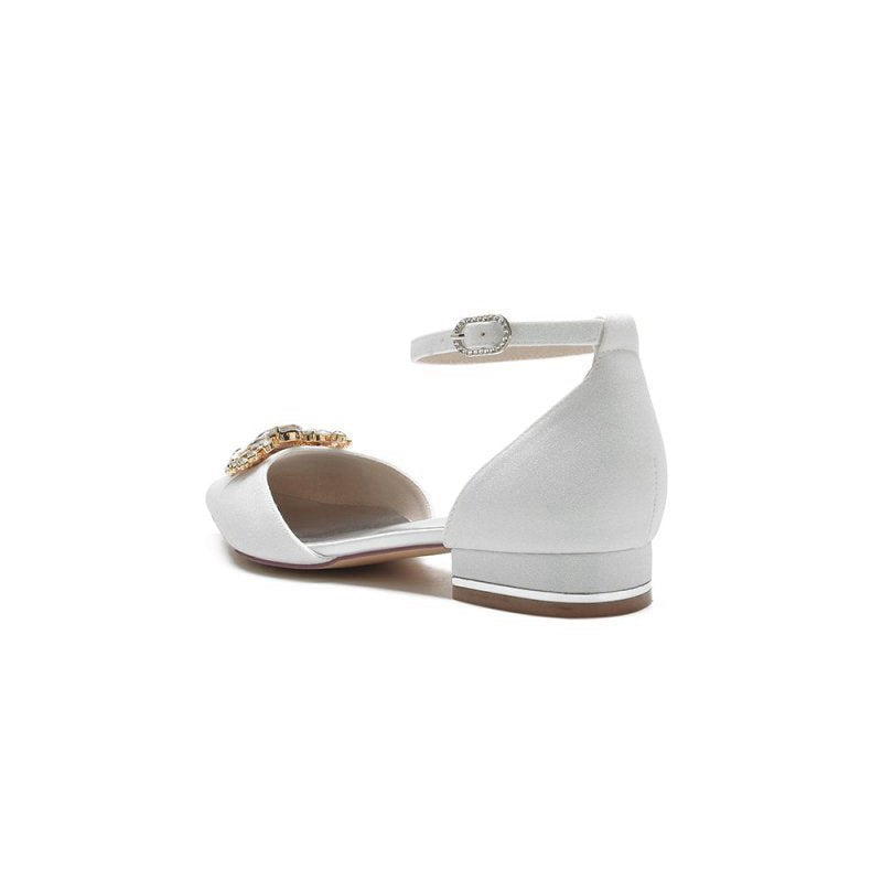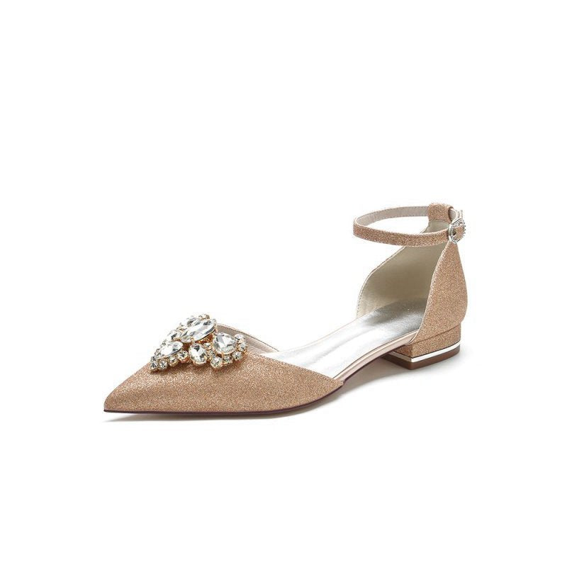 Pointed Toe Glitter Ankle Strap Low Heels With Rhinestone