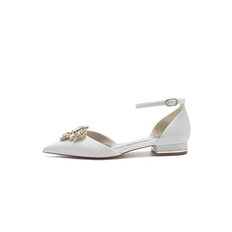 Dressmarkets Pointed Toe Glitter Ankle Strap Low Heels With Rhinestone