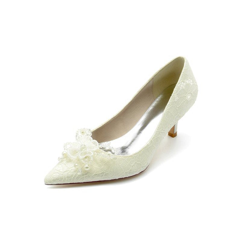 Dressmarkets Pointed Toe Lace Wedding Shoes with Flower