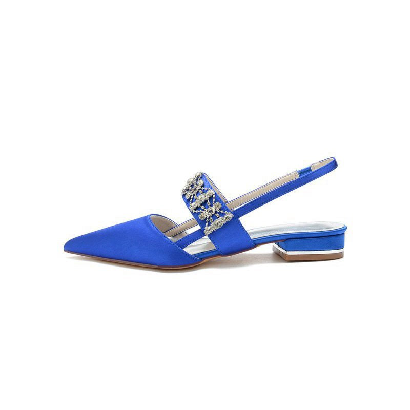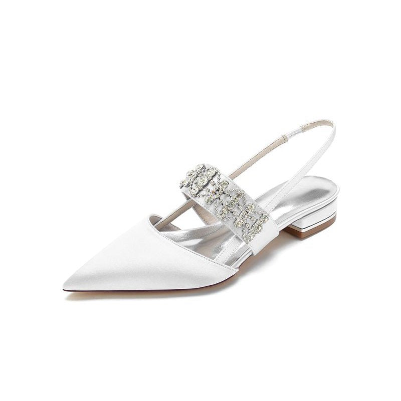 Glam up your wedding, prom, party, or any special occasion with our Pointed Toe Rhinestone Beaded Kitten Heels. Crafted from satin and adorned with rhinestones, these low heels feature a pointed toe and slip-on design for easy wear. The artificial leather lining and rubber sole provide comfort and stability, making them perfect for your big day or any festive event.