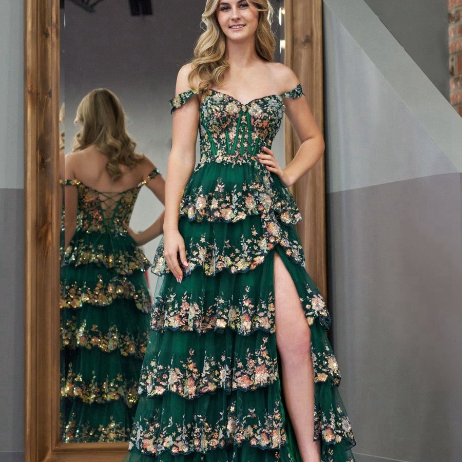 Are you ready to be the queen of prom night? Our exquisite A-Line Corset Prom Dress is the perfect choice for making a stunning entrance! This enchanting gown features an elegant off-the-shoulder design, meticulously crafted corset detailing, and beautiful lace ruffles that will ensure all eyes are on you. Slip into this gorgeous dress and experience the feeling of royalty as you twirl, spin, and dance across the dance floor.
