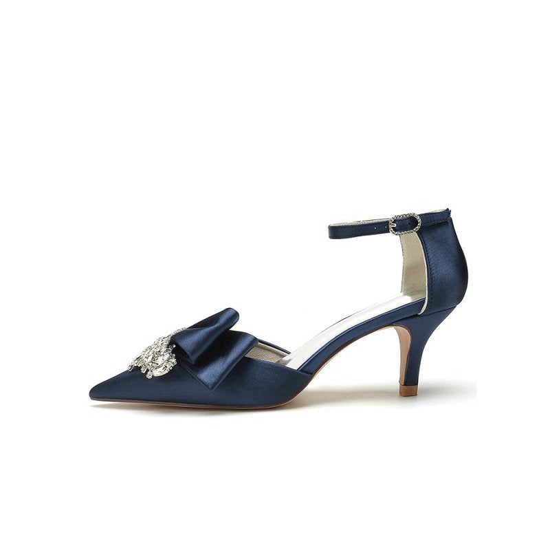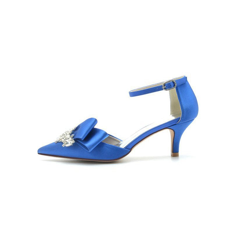 Elevate your style with our Rhinestone Pointed Toe Satin High Heels. These shoes feature sparkling rhinestone embellishments on a satin upper, perfect for your wedding, prom, or any formal party. The 6 cm stiletto heels offer comfort and style, while the pointed toe adds a sleek, sophisticated touch. The slip-on design ensures easy wear, making these wedding shoes a must-have for any special event.
