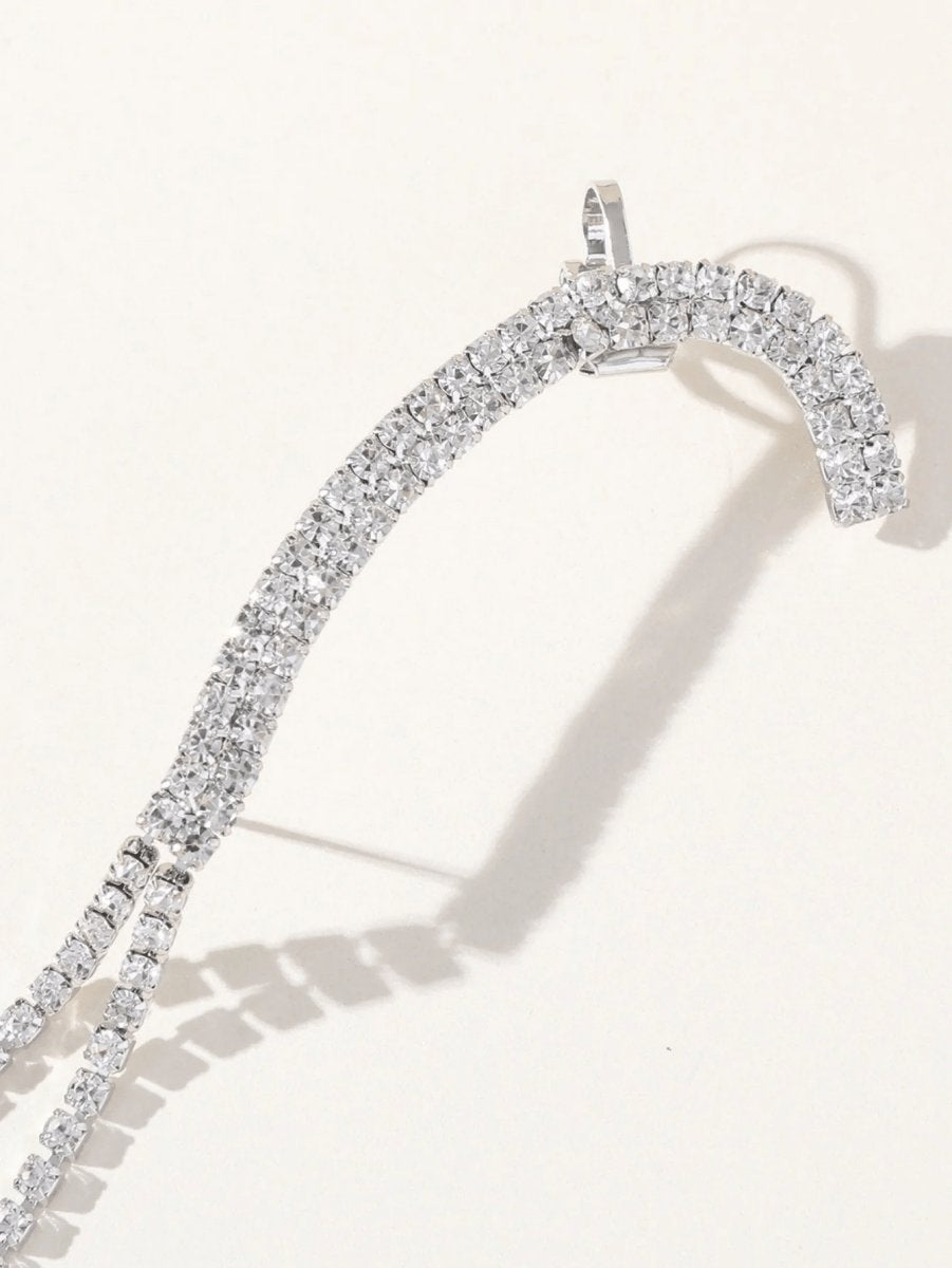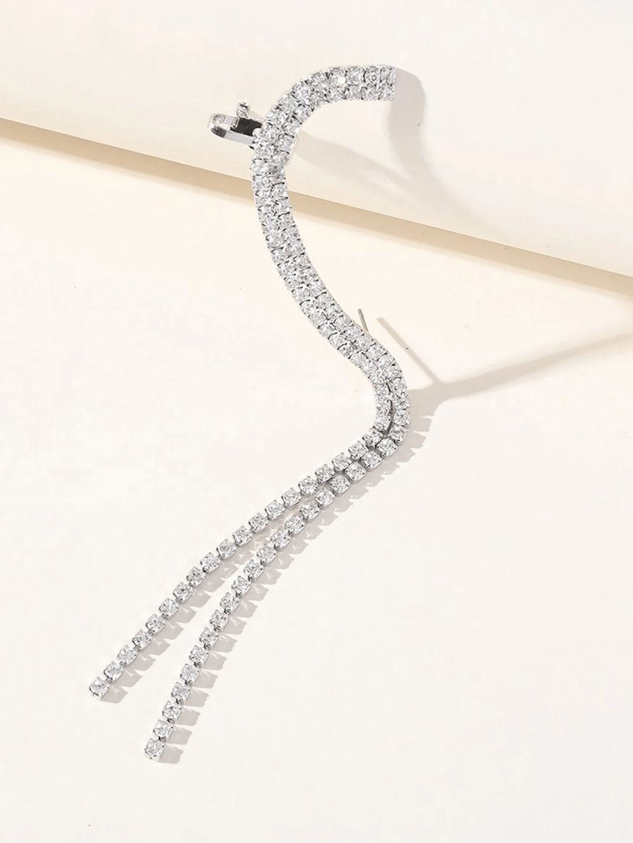 Dressmarkets Rhinestones Silver Tassel Long Chain Earrings