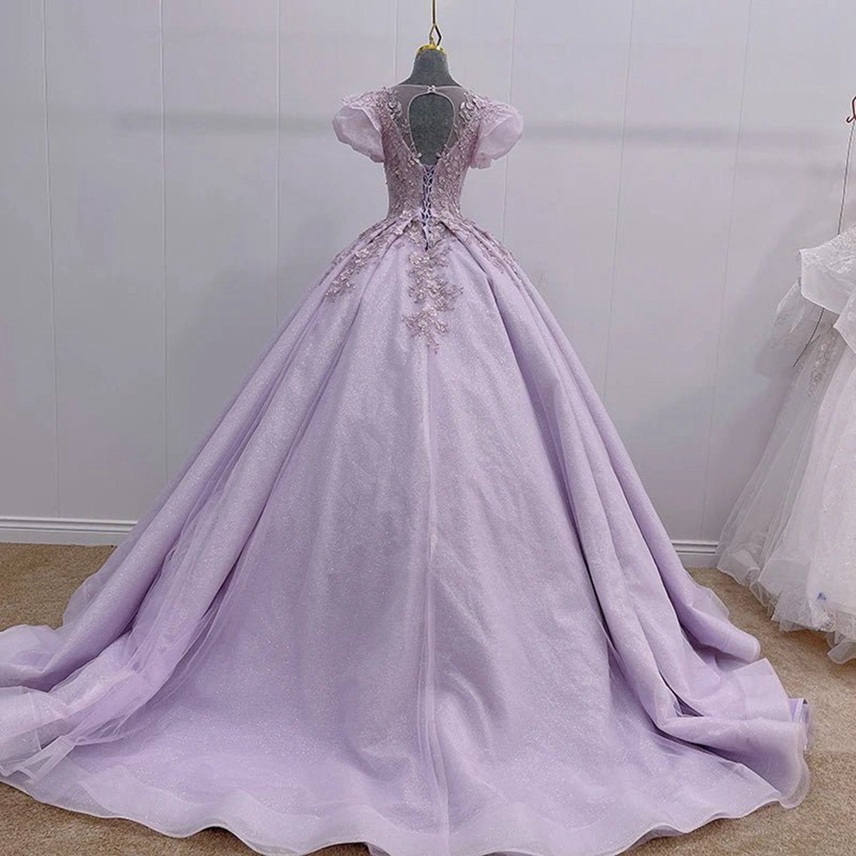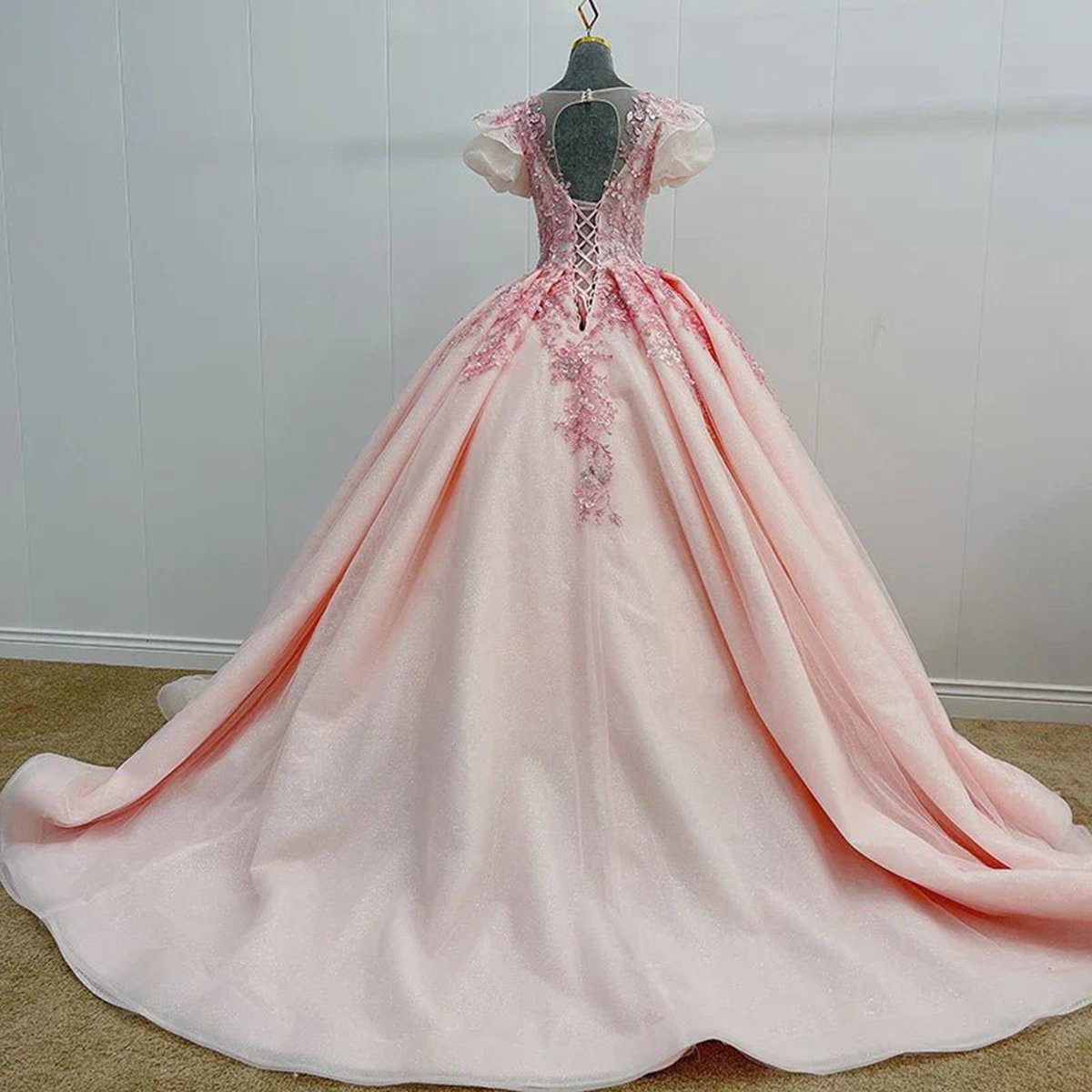 The Romantic Quinceanera Organza Dress Ball Gown is the ultimate expression of elegance and charm, designed to make you feel like a princess on your special day. This dress is crafted from luxurious organza fabric and offers a voluminous ball gown silhouette that beautifully enhances your figure, perfect for twirling and dancing the night away. Featuring a delicate illusion neckline, this dress creates a soft, ethereal look, while the short sleeves add a touch of modesty and sophistication. It is available in three enchanting colors—sky blue, pink, and lavender that bring a serene and romantic feel to your quinceanera celebration. The appliqued floral details add texture and depth, while the sweet bow-knot embellishment at the waist brings an element of whimsy and femininity. A Lace-up back allows for an adjustable, comfortable fit, providing both support and a tailored look. This romantic gown combines timeless beauty with modern elegance, making it an unforgettable choice for your quinceanera or any special event where you want to shine with grace and beauty.