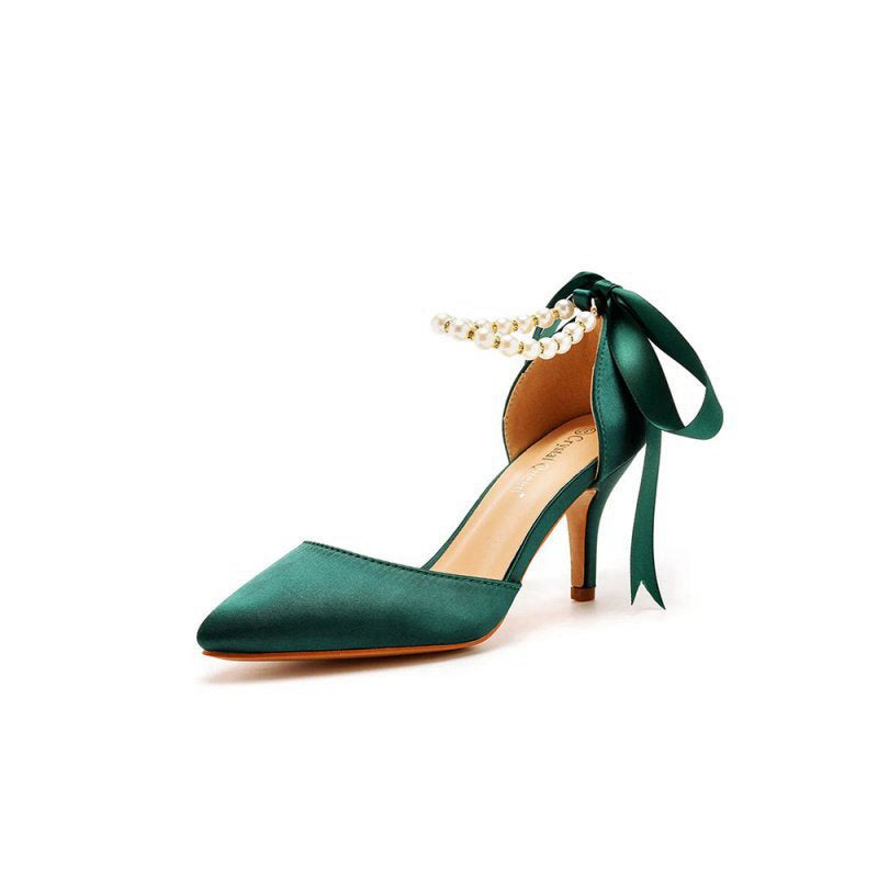 Dressmarkets Satin Pearl Ribbon Tie Pointed Toe Ankle Strap High Heels