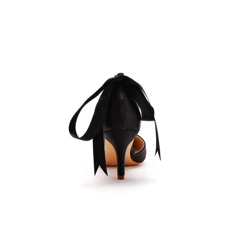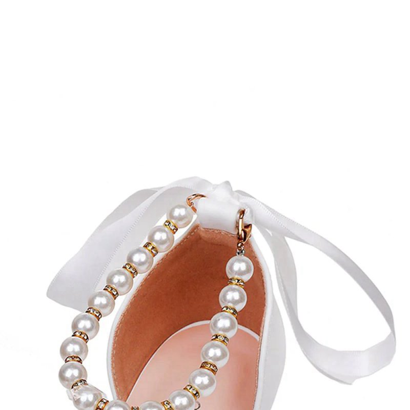 Satin Pearl Ribbon Tie Pointed Toe Ankle Strap High Heels